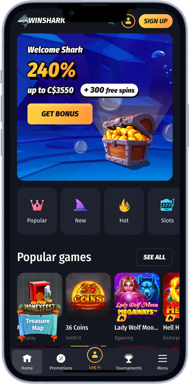 WinShark Casino offers users with various amazing bonuses and promotional offers to improve their overall gambling experience and boost their chances of winning. New users get to claim our mobile casino bonus offer when they make a minimum deposit of C$30.